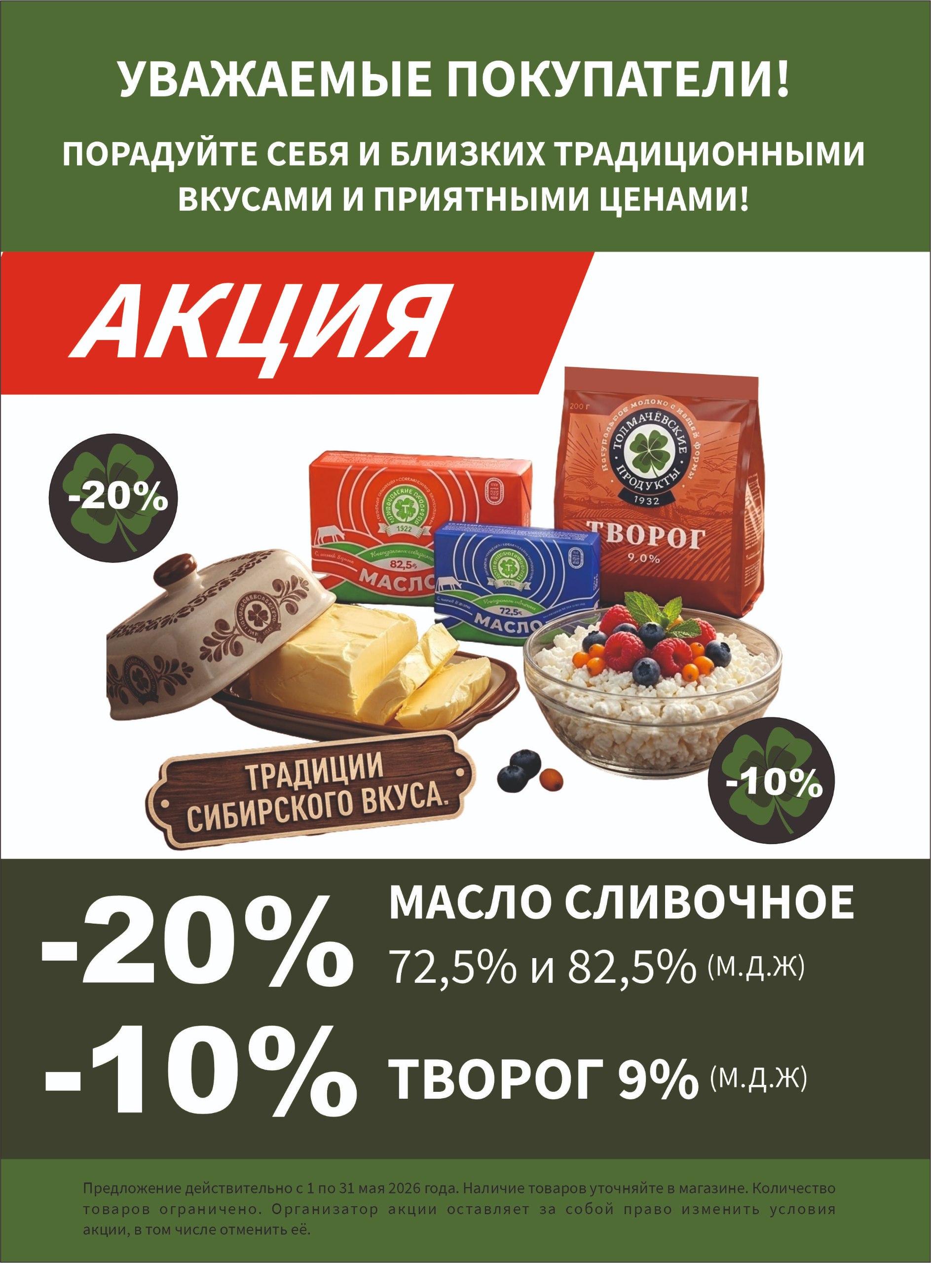 Акция в фирменных магазинах «Толмачёвские продукты»!